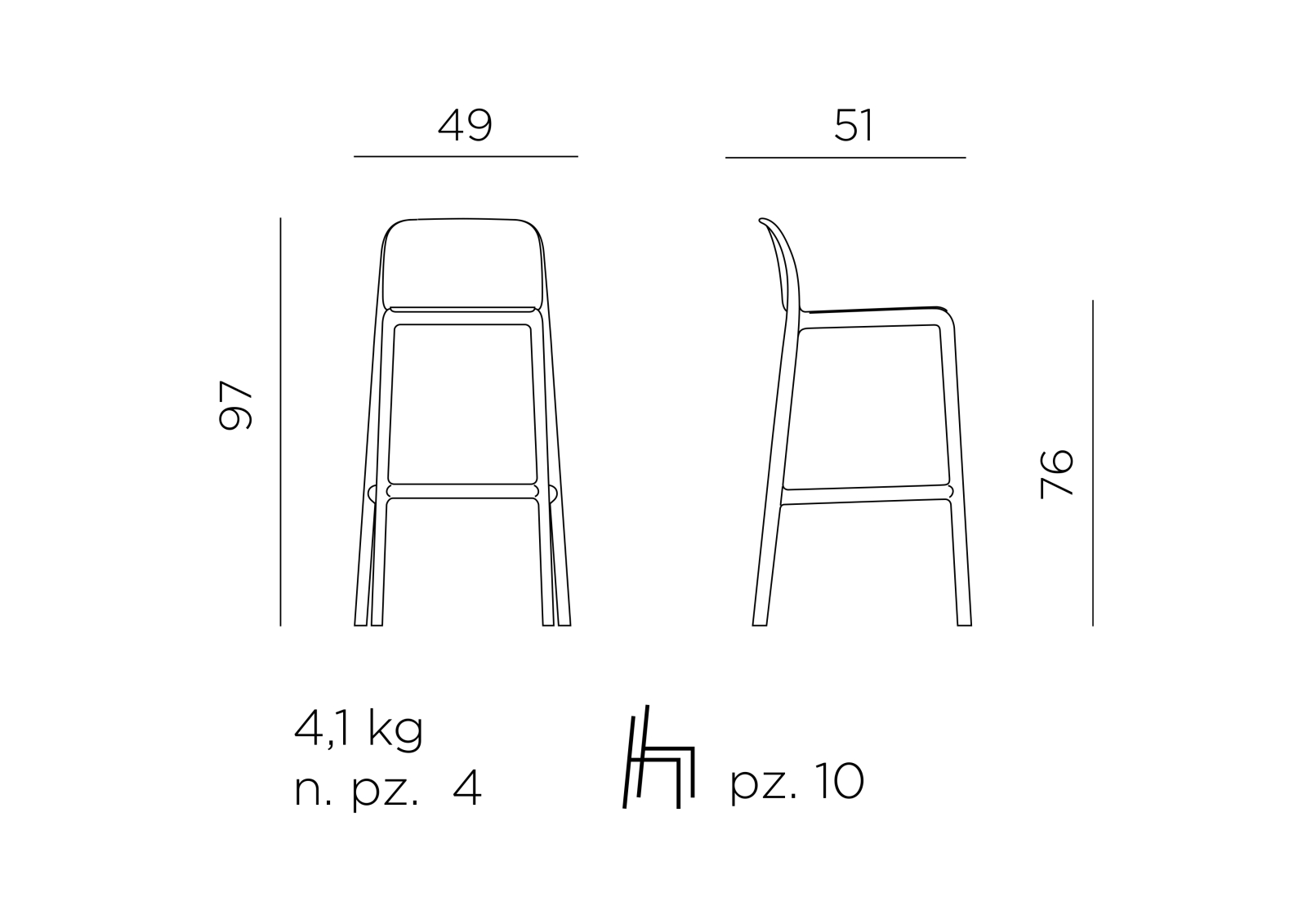 Scaun de bar, din rășină cu fibră de sticlă, cu linii simple și esențiale. Cadru tubular fără suduri și dimensiuni generoase, pentru un scaun agil și confortabil. Faro este ușor, stivuibil și ușor de întreținut.