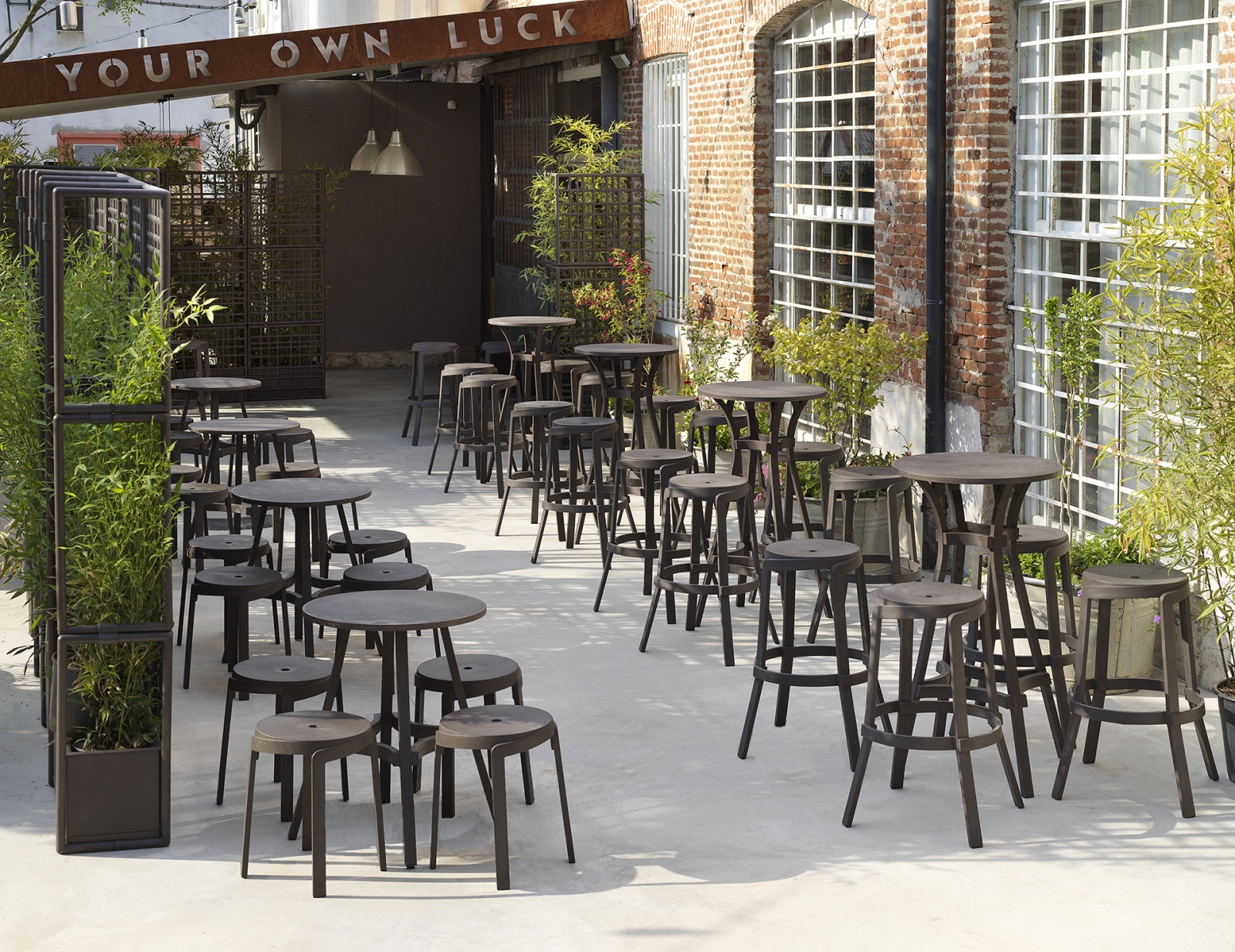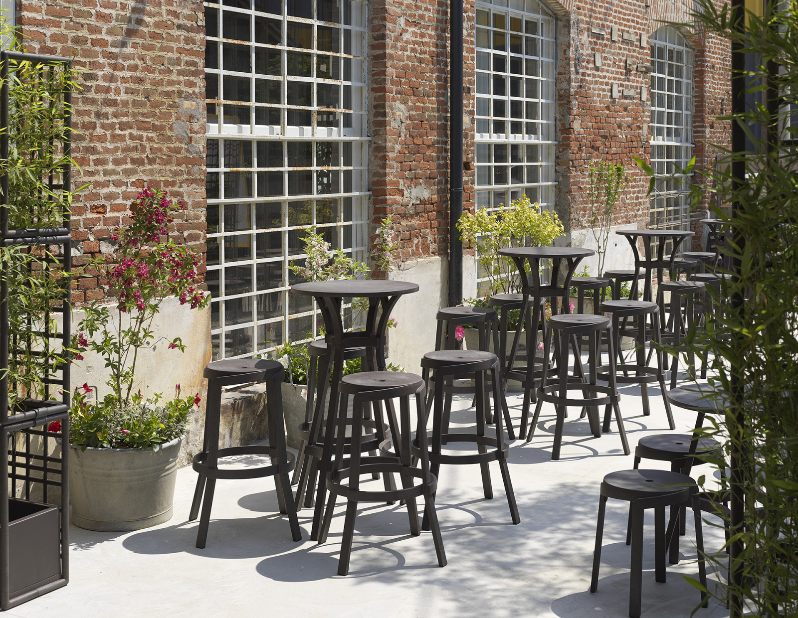 Scaunul înalt de exterior Stack Maxi, realizat din polipropilenă regenerată, se remarcă prin designul său liniar și secțiunile de grosime sporită, inspirate de lamele de lemn. Acest amestec special prezintă mai multe dungi armonizate cromatic și o textură mată, aspră, cu efect vintage.