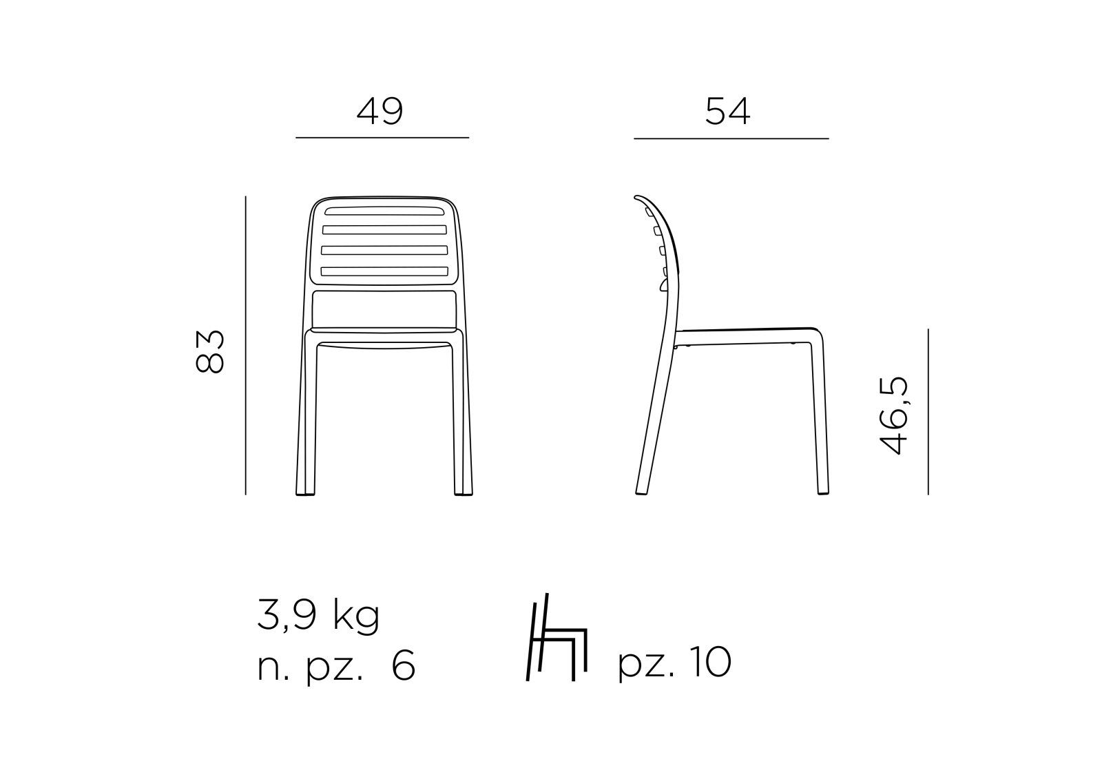 • Scaun monobloc fără cotiere.