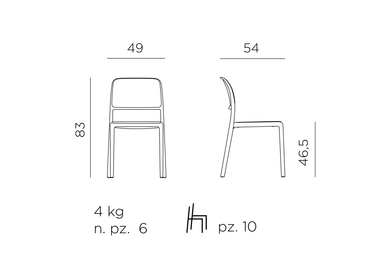 • Scaun monobloc fără cotiere.
