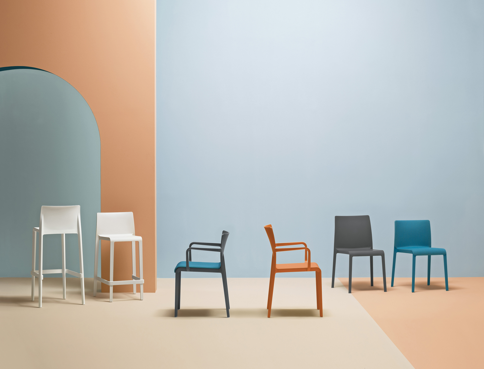 Colecția Volt este elegantă și confortabilă. Se remarcă prin profilul subțire, forma ergonomică și proporțiile armonioase. Scaun din polipropilenă turnat prin injecție asistată de gaz, cu spătar înalt, armat cu fibre de sticlă.
